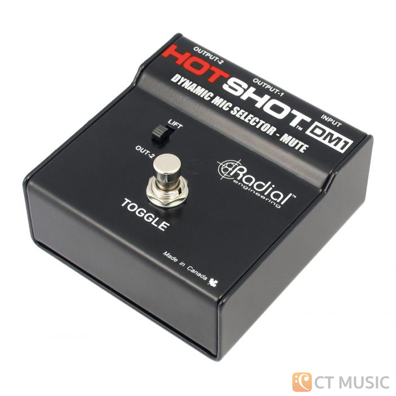 The HotShot DM-1™ is a dynamic microphone switcher with a momentary toggle footswitch, allowing an artist on stage to redirect a vocal mic to feed the stage monitoring system and communicate with band members or technicians.