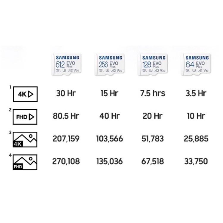 microSD EVO Plus ของ Samsung ได้เพิ่มความจุของหน่วยความจำและฟังก์ชันการทำงานหลายอุปกรณ์ เพื่อให้คุณสามารถมุ่งเน้นไปที่ชีวิต ไม่ใช่เทคโนโลยี การ์ดความเข้ากันได้ UHS-I Speed ​​Class 3 (U3) และ Class 10 นี้เหมาะอย่างยิ่งสำหรับการถ่ายภาพและการบันทึกและเล่นวิดีโอในรูปแบบ Full HD และด้วยความเร็วในการอ่านสูงสุด 130MB/s* และความเร็วในการเขียนสูงสุด 60MB/s* แอปและวิดีโอจึงโหลดเร็วขึ้นและถ่ายโอนไฟล์ได้เร็วขึ้น