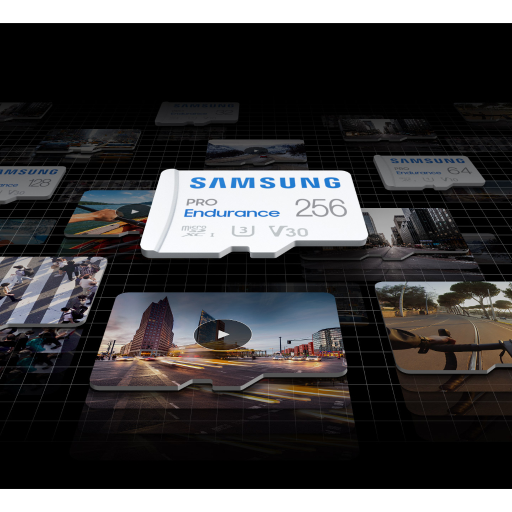 การ์ด Micro SDXC Samsung Pro Endurance 256GB ให้การบันทึกต่อเนื่องยาวนานกว่าการ์ดเน้นความเร็วของ Samsung ถึง 25 เท่า ให้คุณใช้งานได้ยาวนานถึง 140,150 ชั่วโมง