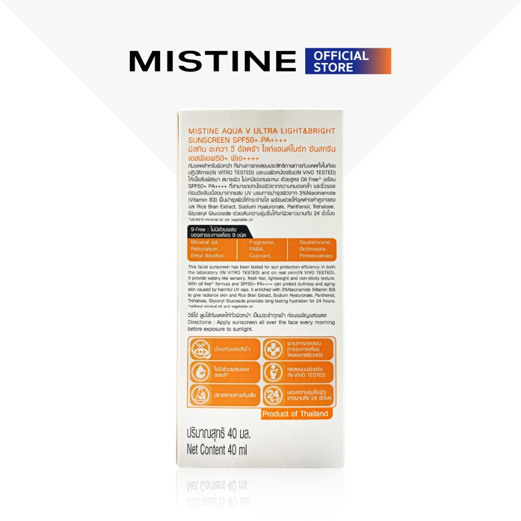MISTINE AQUA V ULTRA LIGHT&BRIGHT SUNSCREEN SPF50+ PA++++ 40 ML
