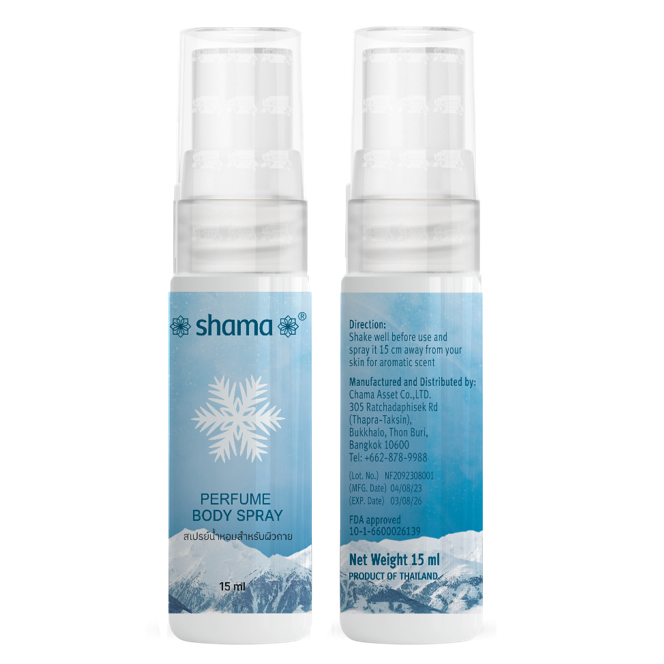 ขนาดและวิธีการใช้ : เขย่าก่อนใช้ ฉีดพ่นร่างกายให้ห่างจากผิวประมาณ 15 เซนติเมตร เพื่อให้ความหอม