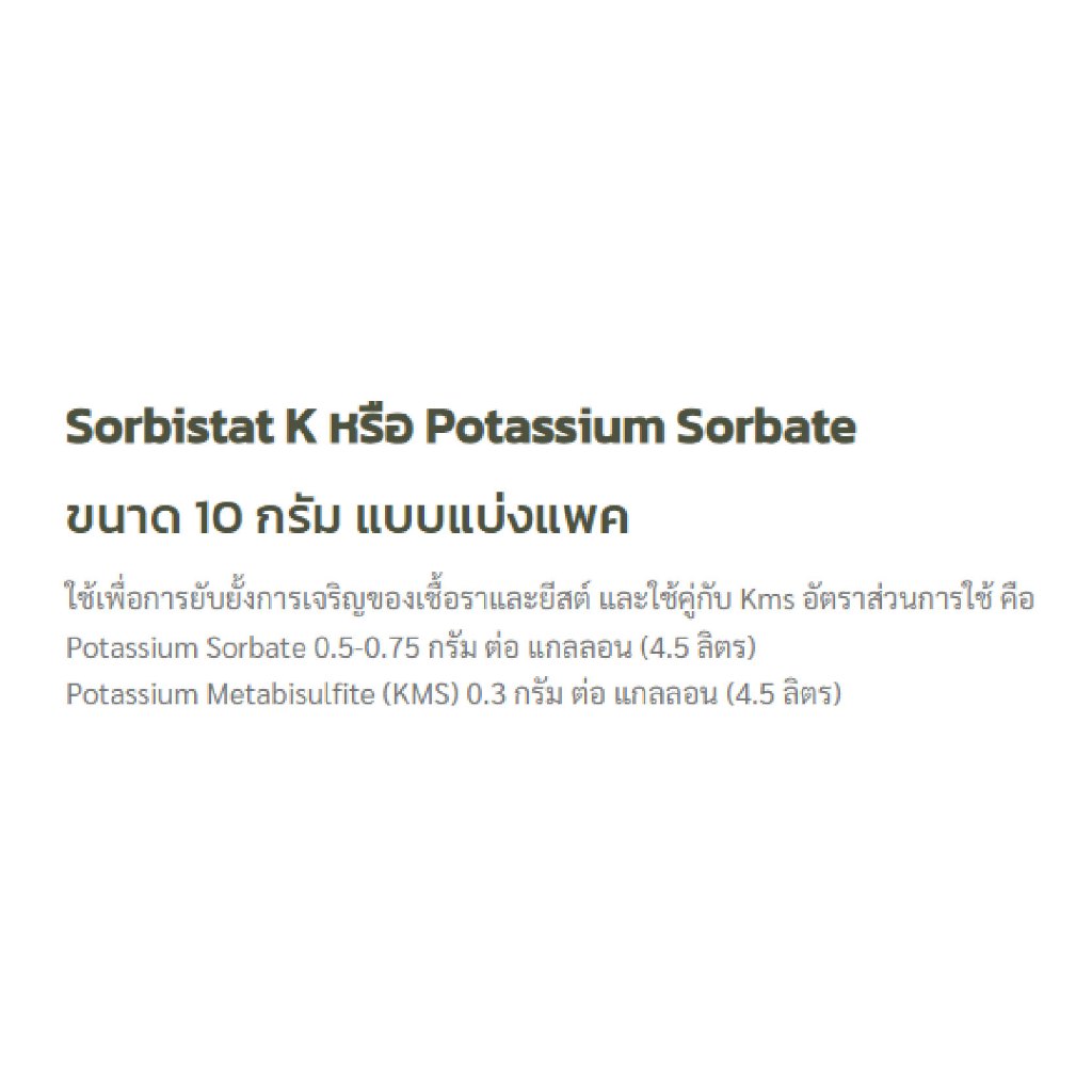 ensures against renewed fermentation in wine when residual sugar is added post the initial ferment. Add at the rate of .5 to .75 grams per gallon (125-200ppm) in conjunction with .3 grams of meta-bisulphite (50ppm) per gallon.