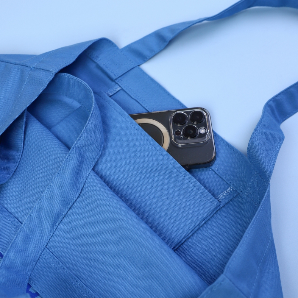 กระเป๋าผ้าเเคนวาส มีกระเป๋าด้านหน้า เเละด้านใน