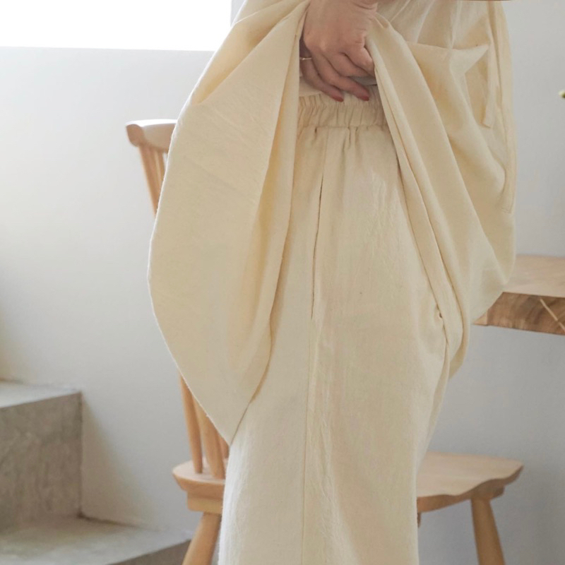 มีกระเป๋าข้าง2ด้าน รอบเอวเป็นแบบยืด เอวสูง ทรงขากระบอกใหญ่