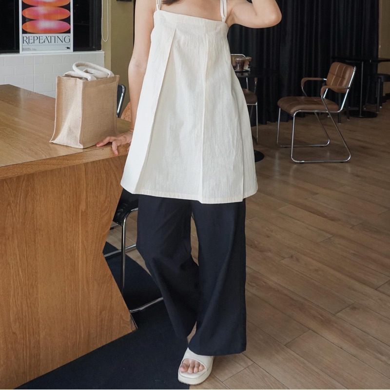 สายมัดได้หลายแบบ ด้านหลังเป็นยางยืด ใส่เป็นมินิเดรสได้ (สีCreamyด้านหน้าอกมีซับ)