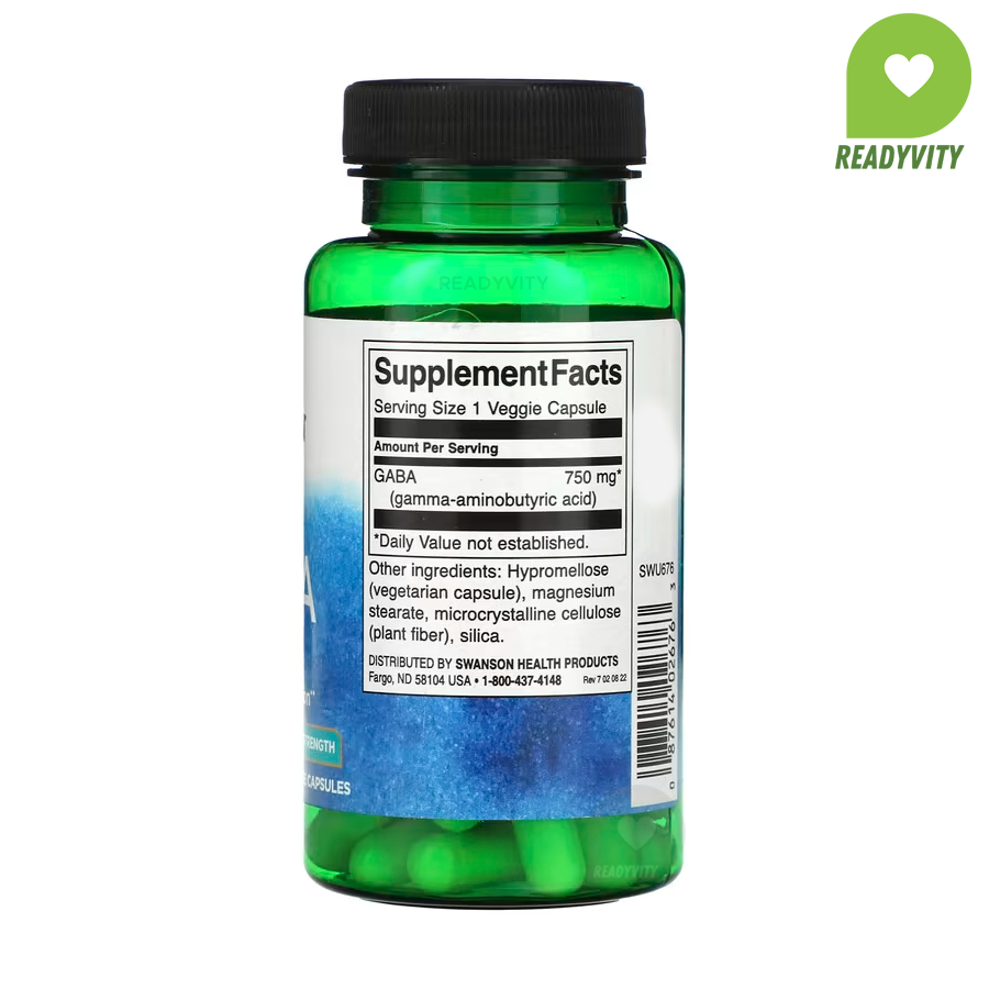 ตัวเลือกที่เลือก Swanson, GABA, Maximum Strength, 750 mg, 60 Veggie Strength ฿490
