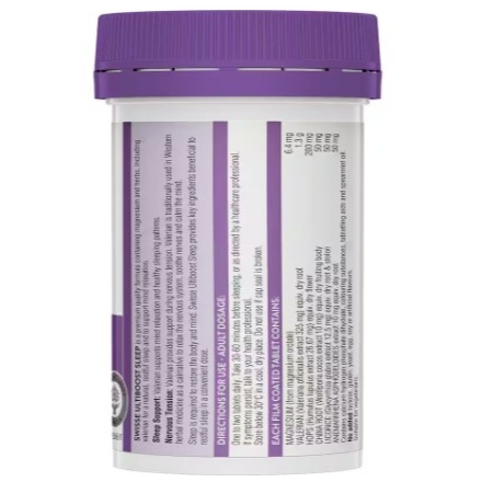 Swisse Ultiboost Sleep is a premium quality formula containing magnesium and herbs, including valerian, which helps to relieve nervous tension and assist natural, restful sleep.