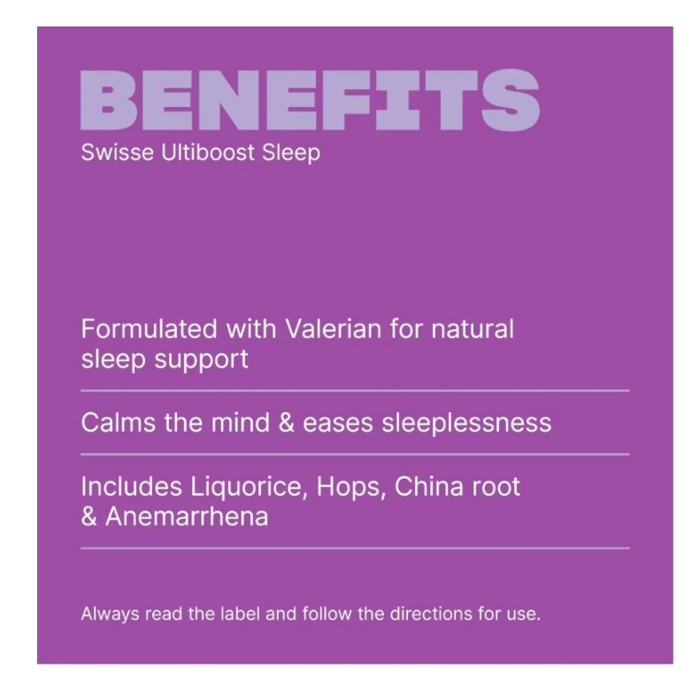 Sleep is required to restore the body and mind. Swisse Ultiboost Sleep has been formulated based on traditional evidence to provide key ingredients beneficial to sleep in a convenient dose.