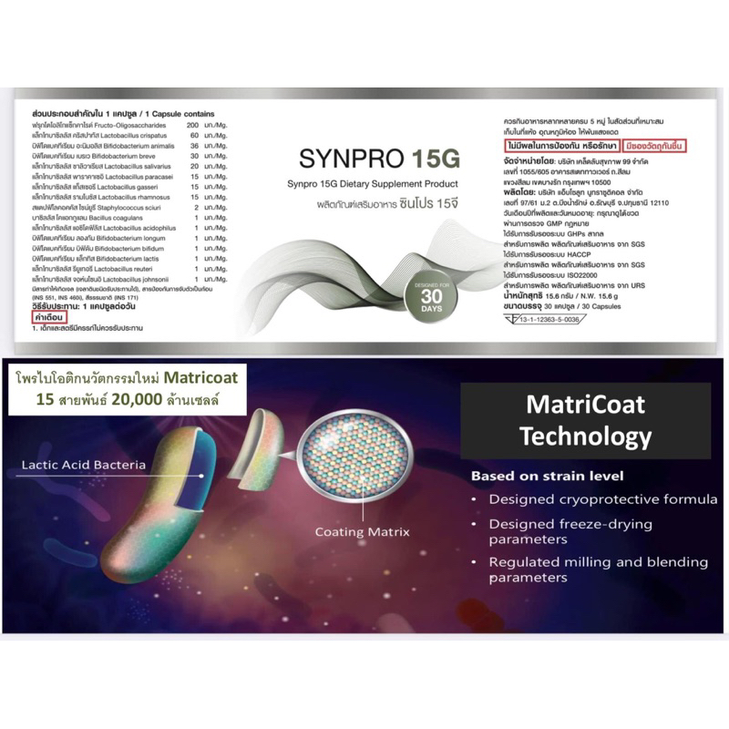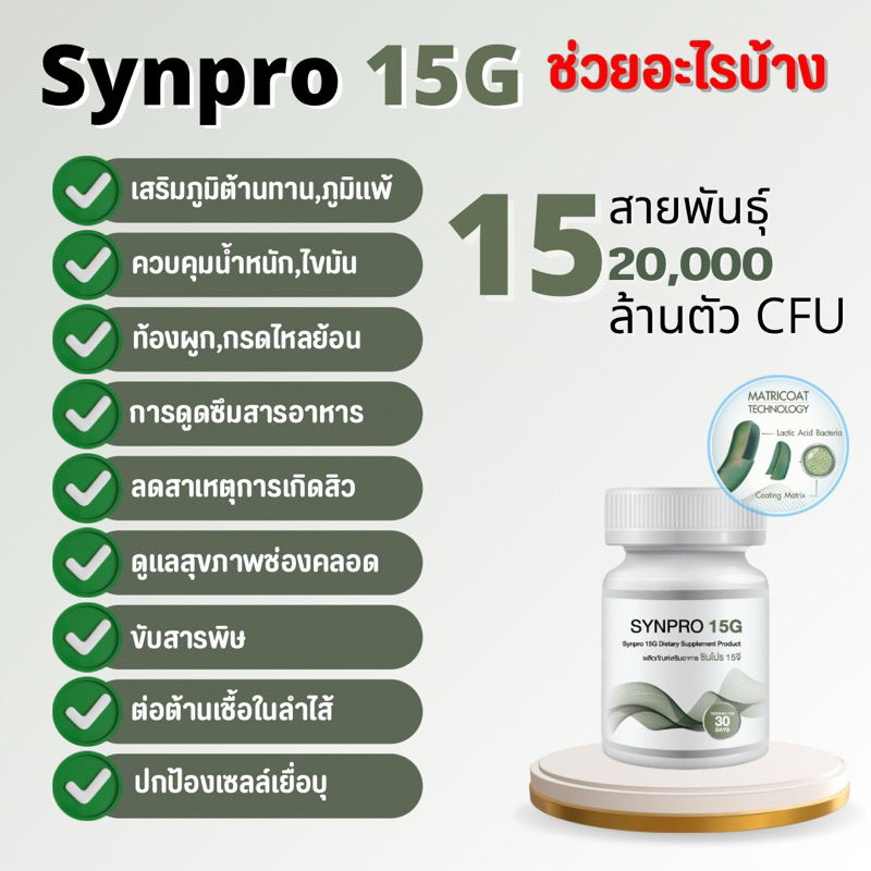 SYNPRO 15G ซินไบโอติก โพรไบโอติก 15 สายพันธุ์ + พรีไบโอติกส์ ปรับสมดุลลำไส้ท้องผูก เสริมภูมิคุ้มกัน