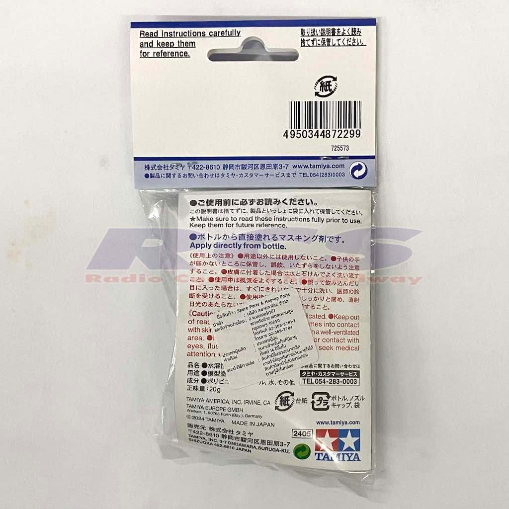 This special light green fluid can be used to mask off areas that tape would struggle on – including complex or curved shapes and difficult surface finishes. ★It can be applied directly from the bottle, and minimal dripping makes for a clean, precise job. ★Can be used with Tamiya Color paint products. ★Bottle weight: 20g.