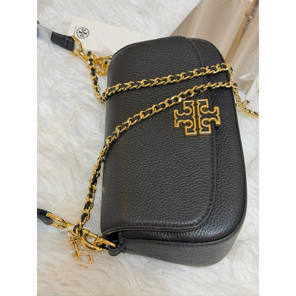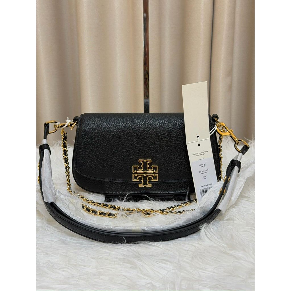 🖤TORY BURCH 138772 Britten Convertible Crossbody มี 2 สาย สายโซ่ และสายหนัง ถอดได้ ปรับเป็นสะพายข้างเก๋ๆ หรือสะพายไหล่หรูๆ ใบเดียวจบ คุ้มเลยค่ะ
