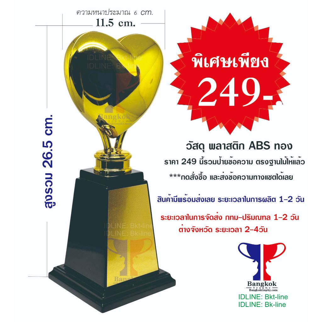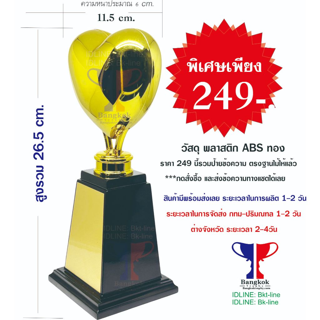 วัสดุเป็น พลาสติก ABS ชุปสีทองอย่างดี พร้อมฐานไม้ สามารถใส่ ชื่องาน รายละเอียดถึงผู้ที่จะรับได้