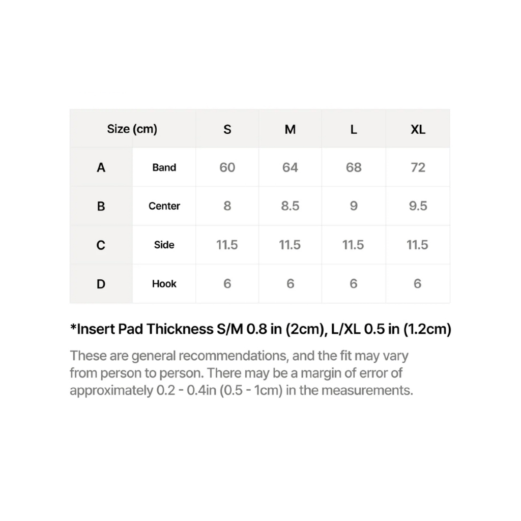 - แผ่น: ในตัว / ความหนา - S / M: 2 ซม., L / XL: 1.2 ซม