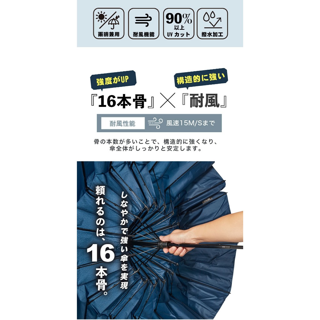 This windproof folding umbrella has 16 ribs and is not likely to break even in strong winds. This popular series will be released in 2025 with an even lighter weight.