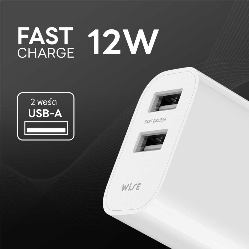 WISE อะแดปเตอร์ 12W หัวชาร์จ 2 พอร์ต 2 USB-A Adapter FAST CHARGER ชาร์จเร็ว รับประกัน 2 ปี (WIA-000005)